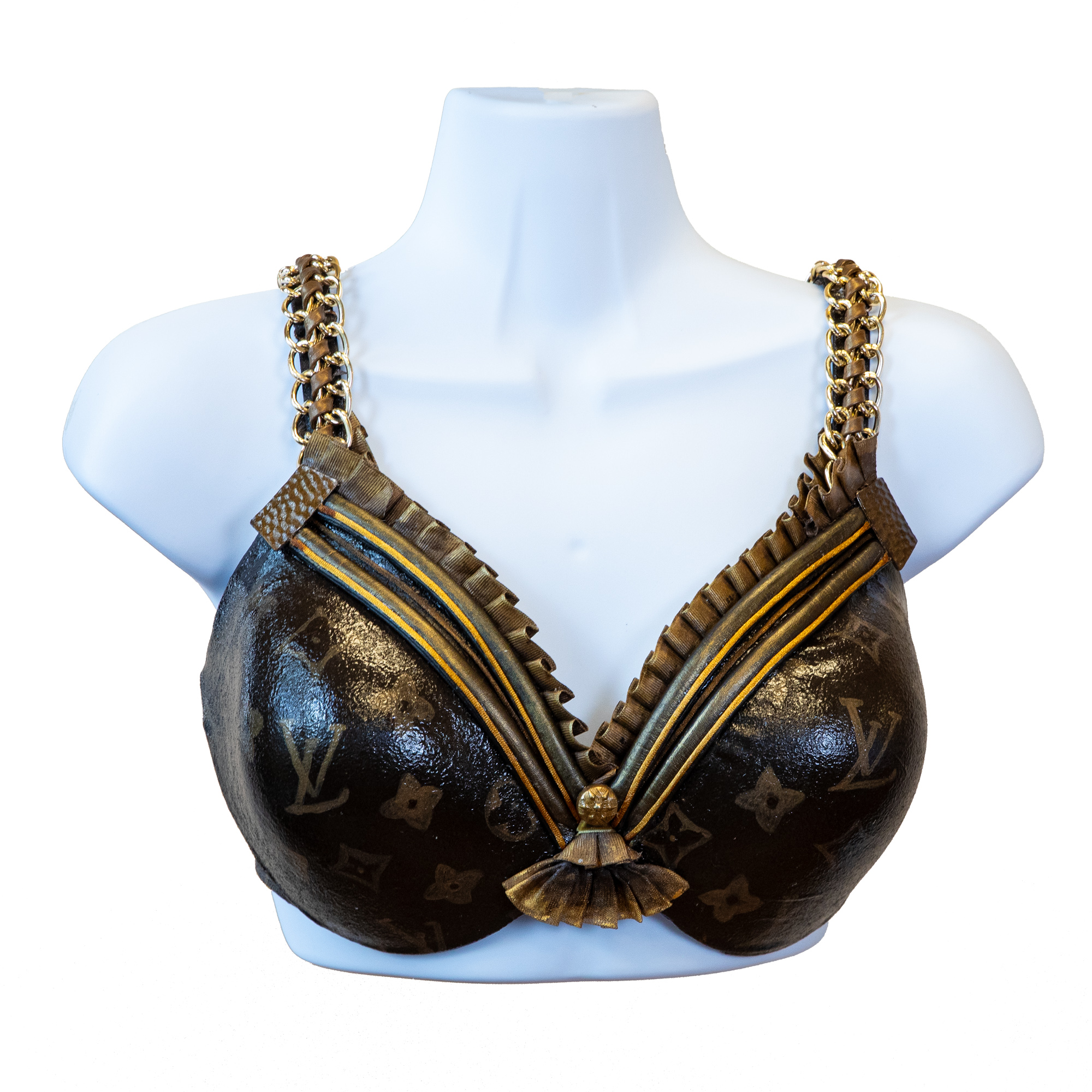 NOTE: TAO SSI is not affiliated with Louis Vuitton. This submission to the ARTrageous Bra 2025 competition features an original, hand-painted design that is inspired by Louis Vuitton but is not an authentic product or officially associated with the brand. No trademark infringement is intended.